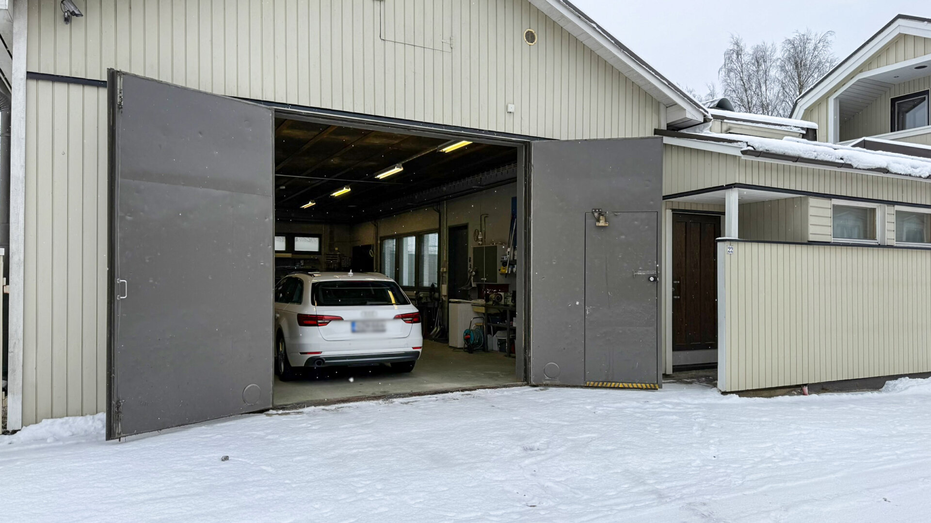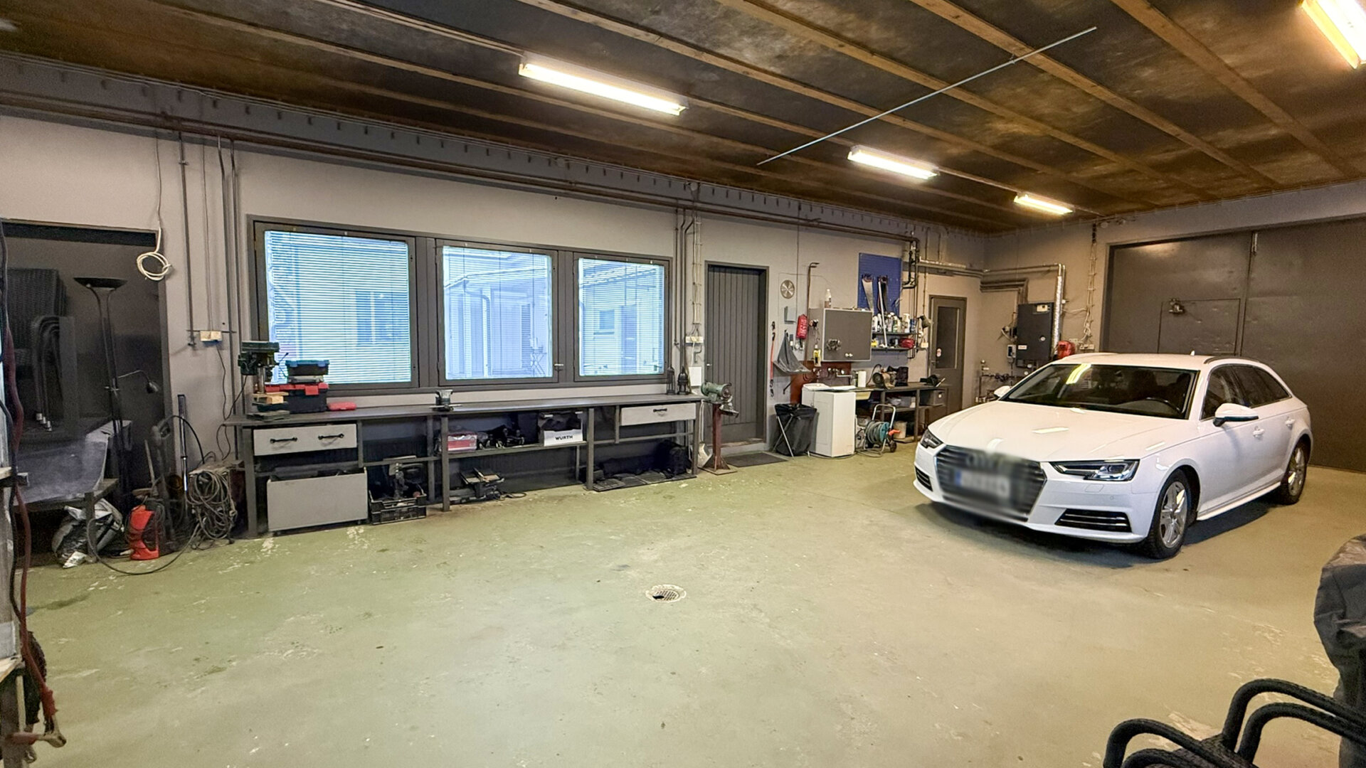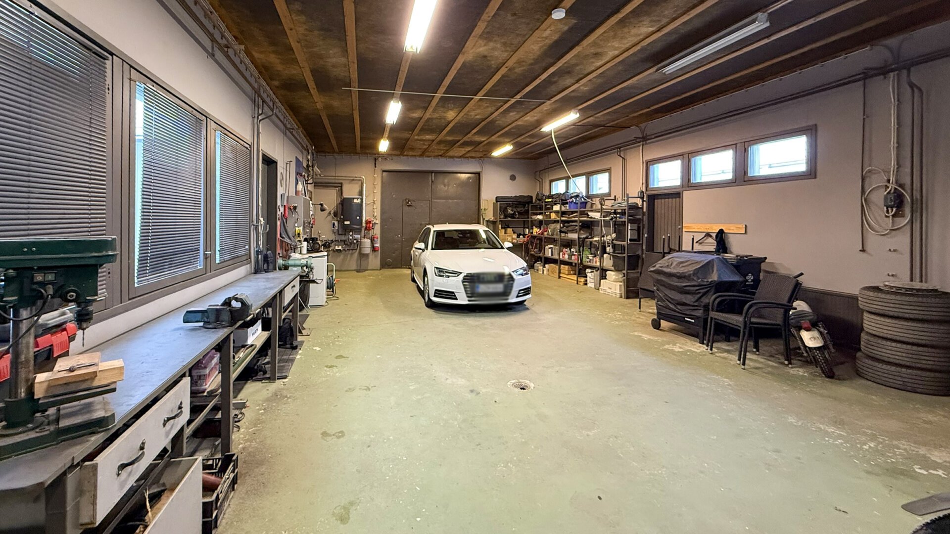 - Verkstad/garagebyggnad+ekonomidel, byggt 1975/76, isolerad och uppvärmd (fjärrvärme). Omfattar verkstad/garage på ca 90 m² samt två kontorsrum och wc i direkt anslutning till garagedelen. Med separat ingång finns dessutom omklädningsrum, tvättrum, bastu och ett tidigare pannrum. Totalyta ca 125/135 m² + biltak på innergården.