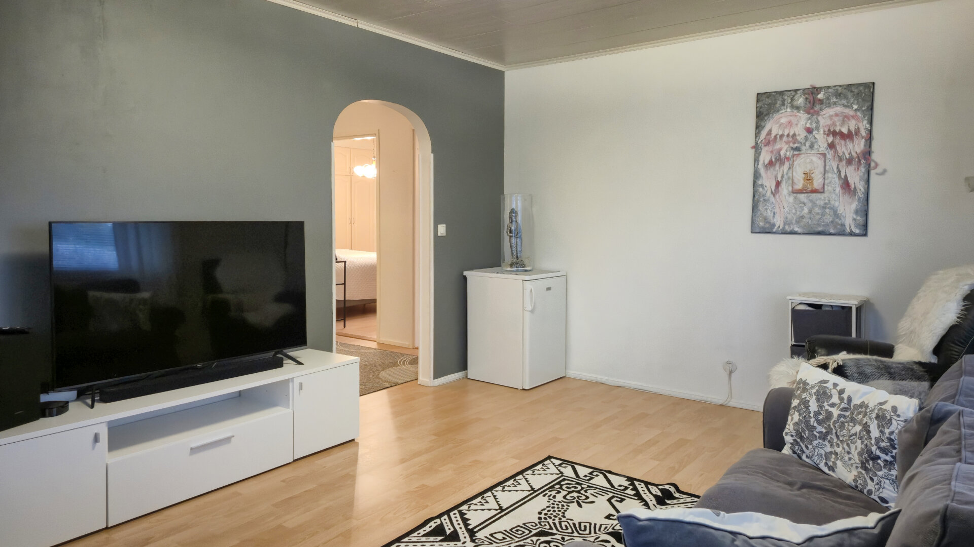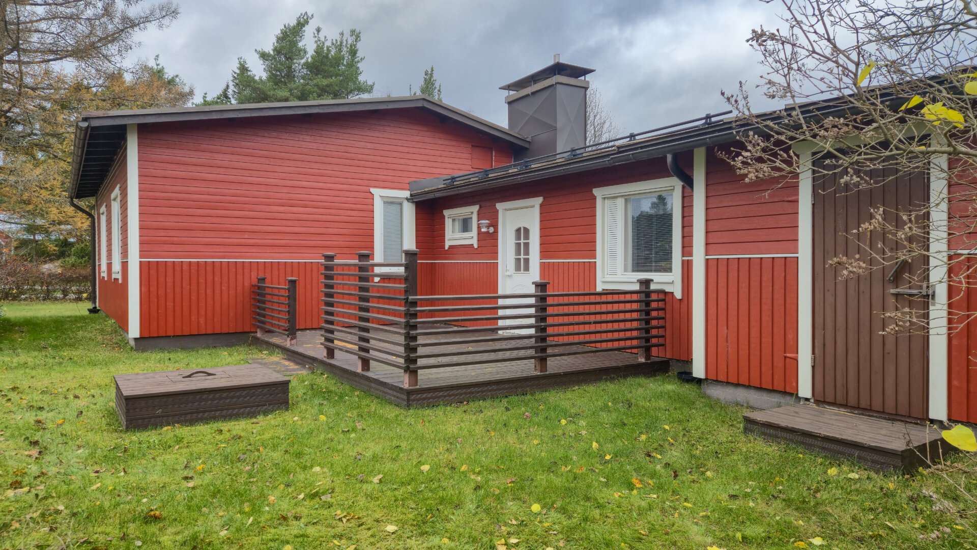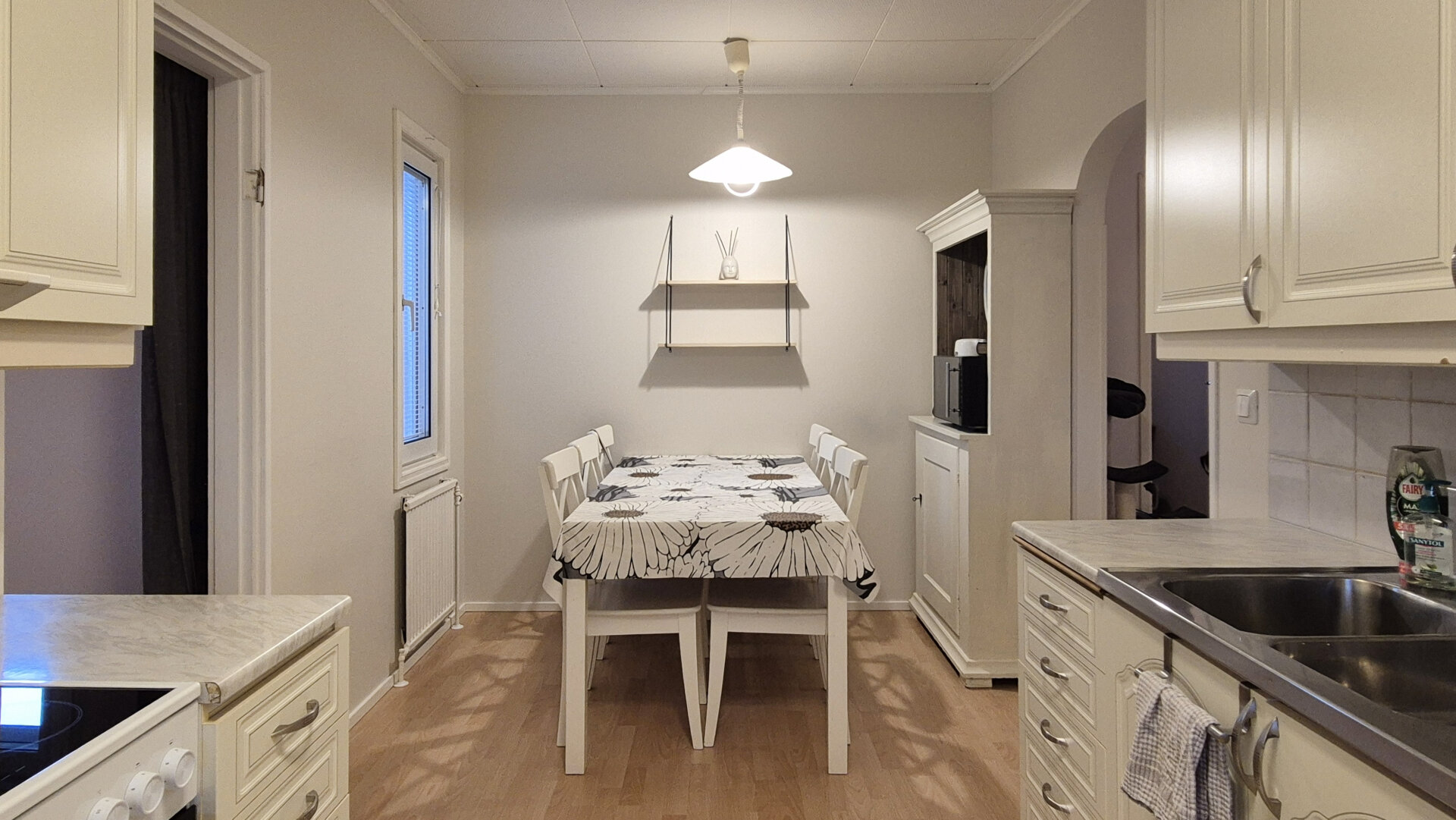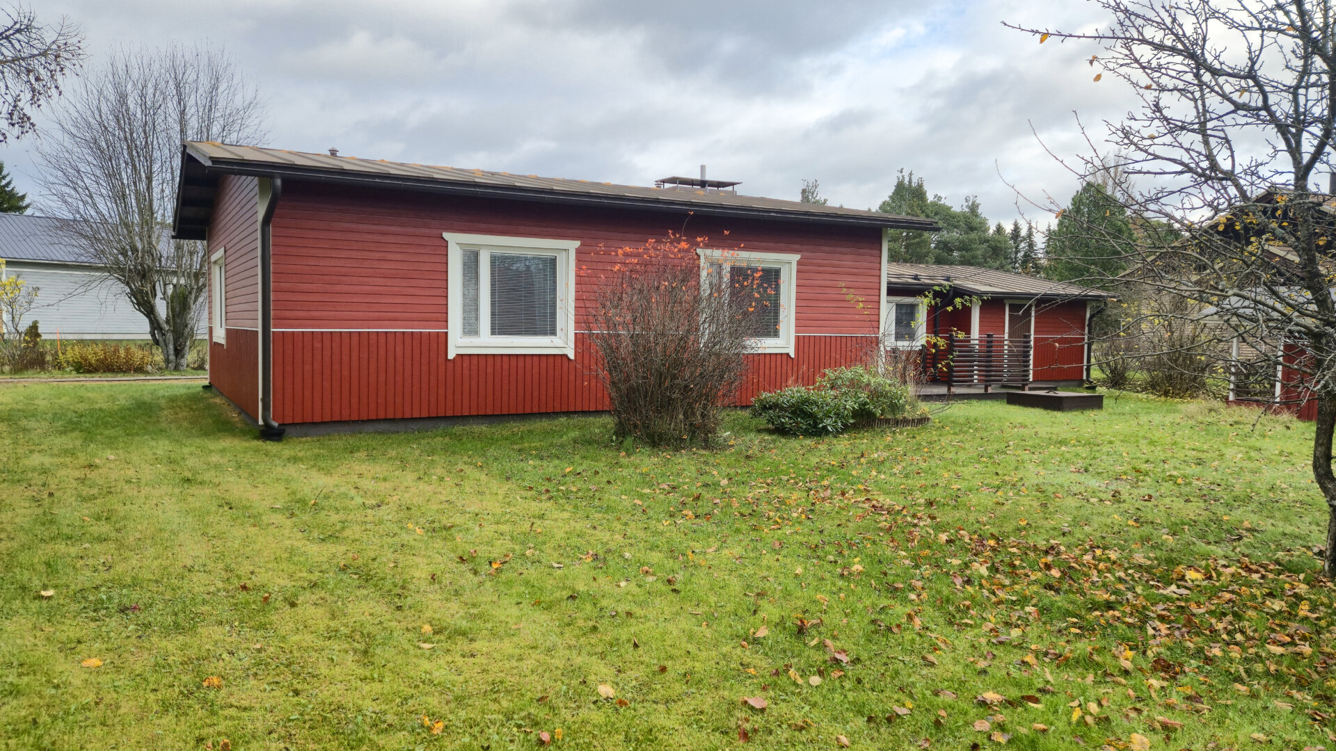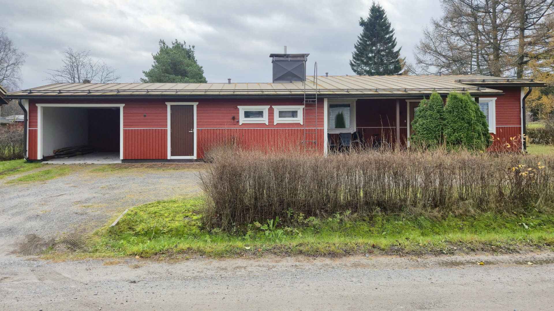 Välhållet och renoverat egnahemshus på attraktivt och lugnt läge med stor, 1670 m2 egen tomt. Huset byggt 1968/69 omfattande 3 r+kök+wc+spisrum+bastu/bdr, varmförråd och kallförråd samt biltak, ca 100/140 m2.
