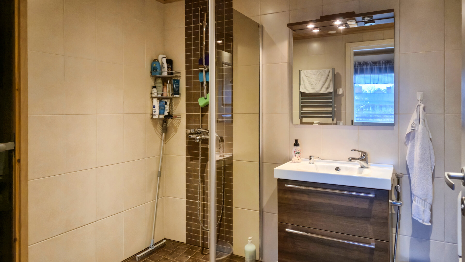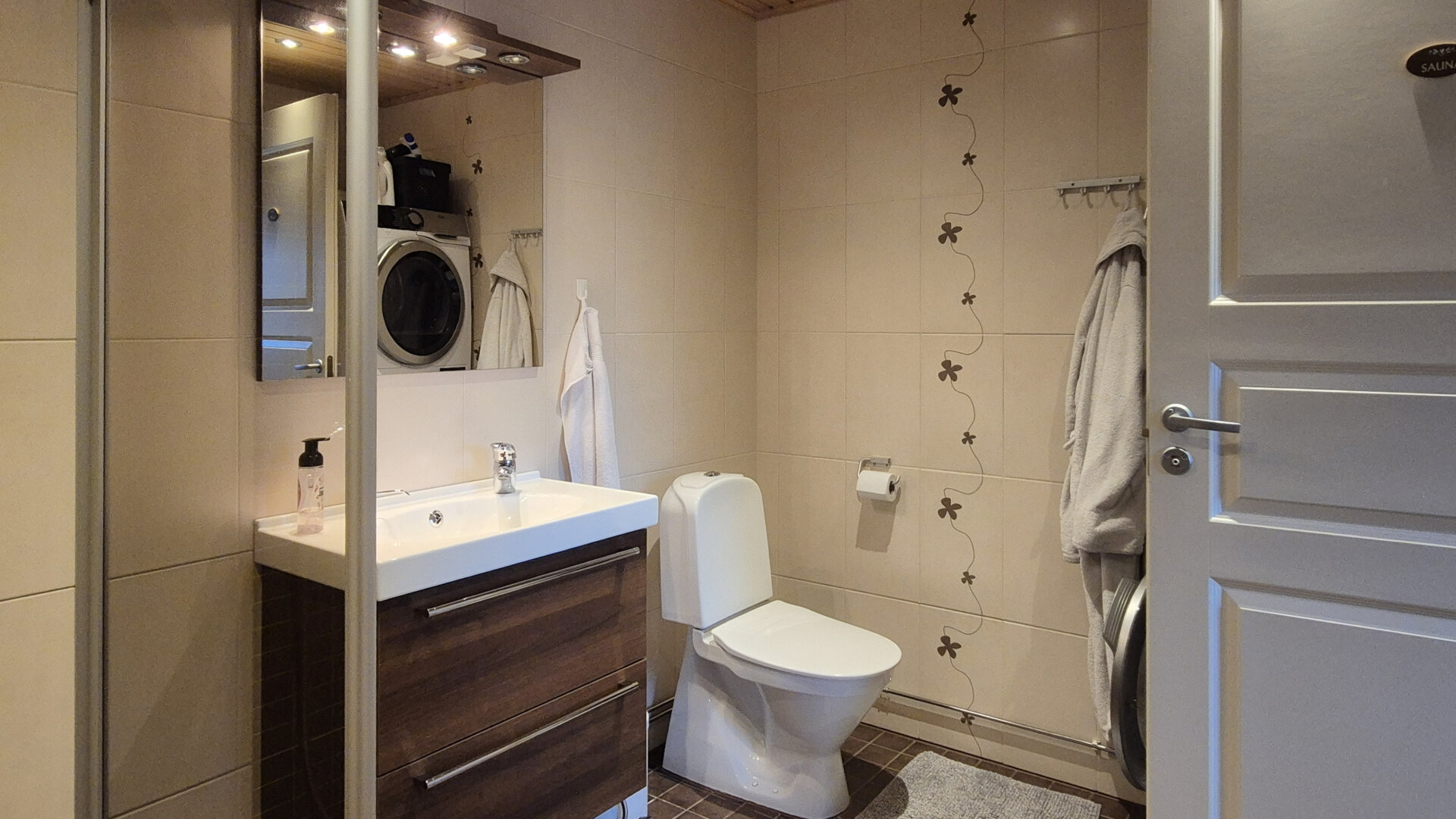 • Utrustning: Duschvägg, tvättmaskinsanslutning, golvvärme, dusch, spegelskåp, integrerad armatur, badrumsskåp, specialutrustning installerad
