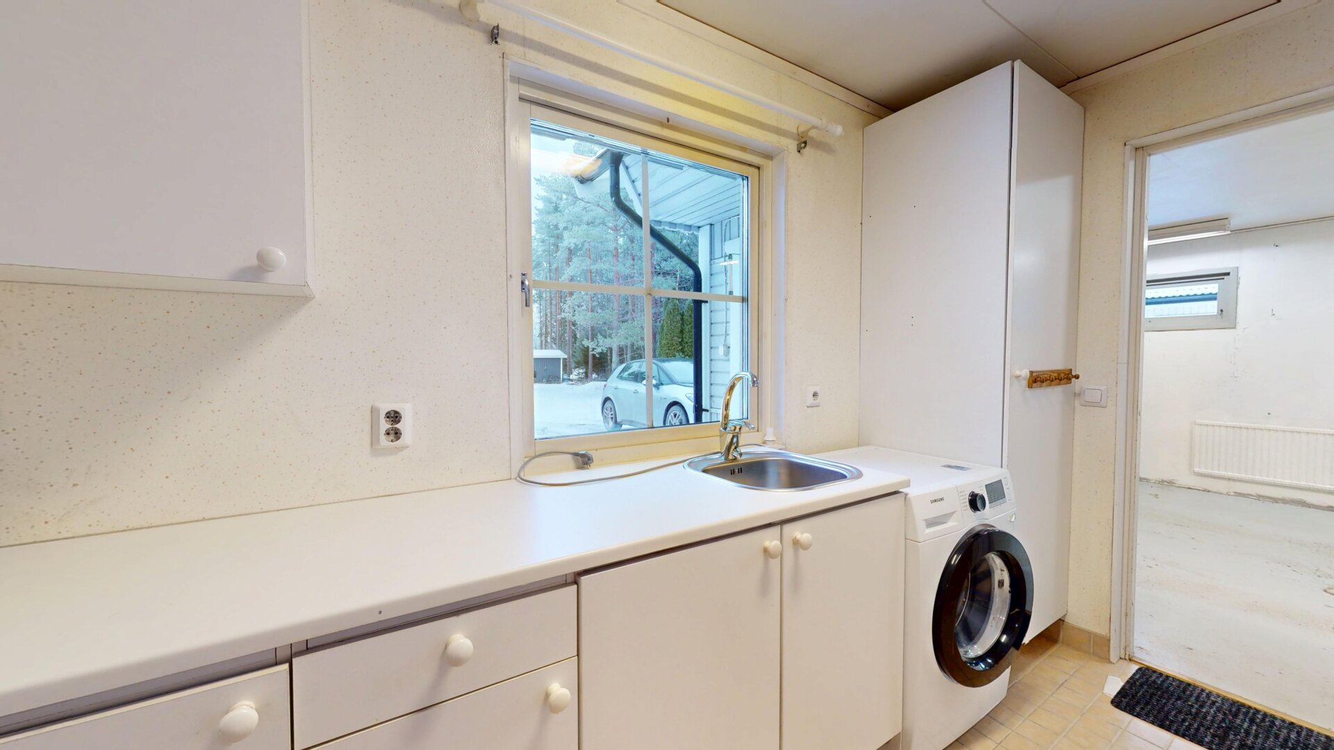 - Kodinhoitohuoneesta kulku suoraan autotalliin ja varastoon.