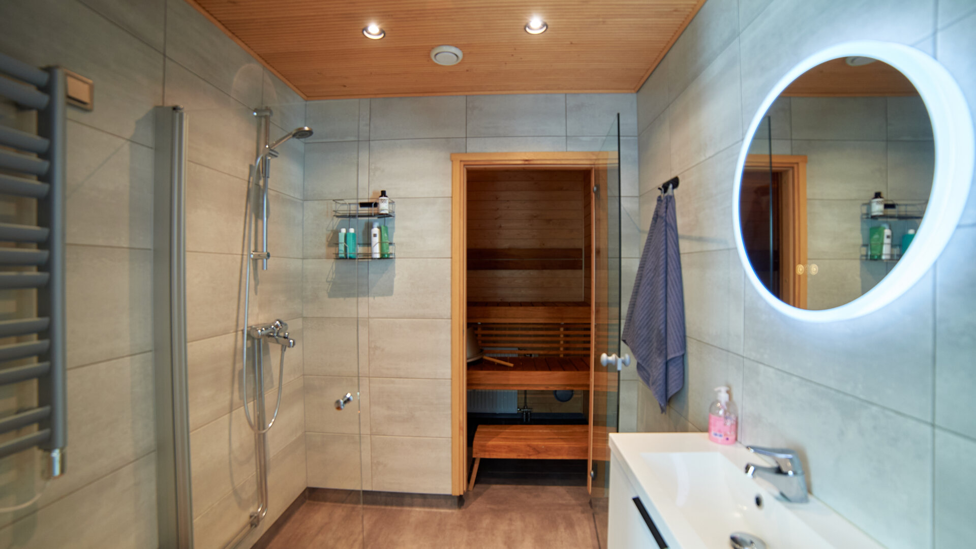 • Utrustning: Duschvägg, golvvärme, dusch, spegel, integrerad armatur, badrumsskåp