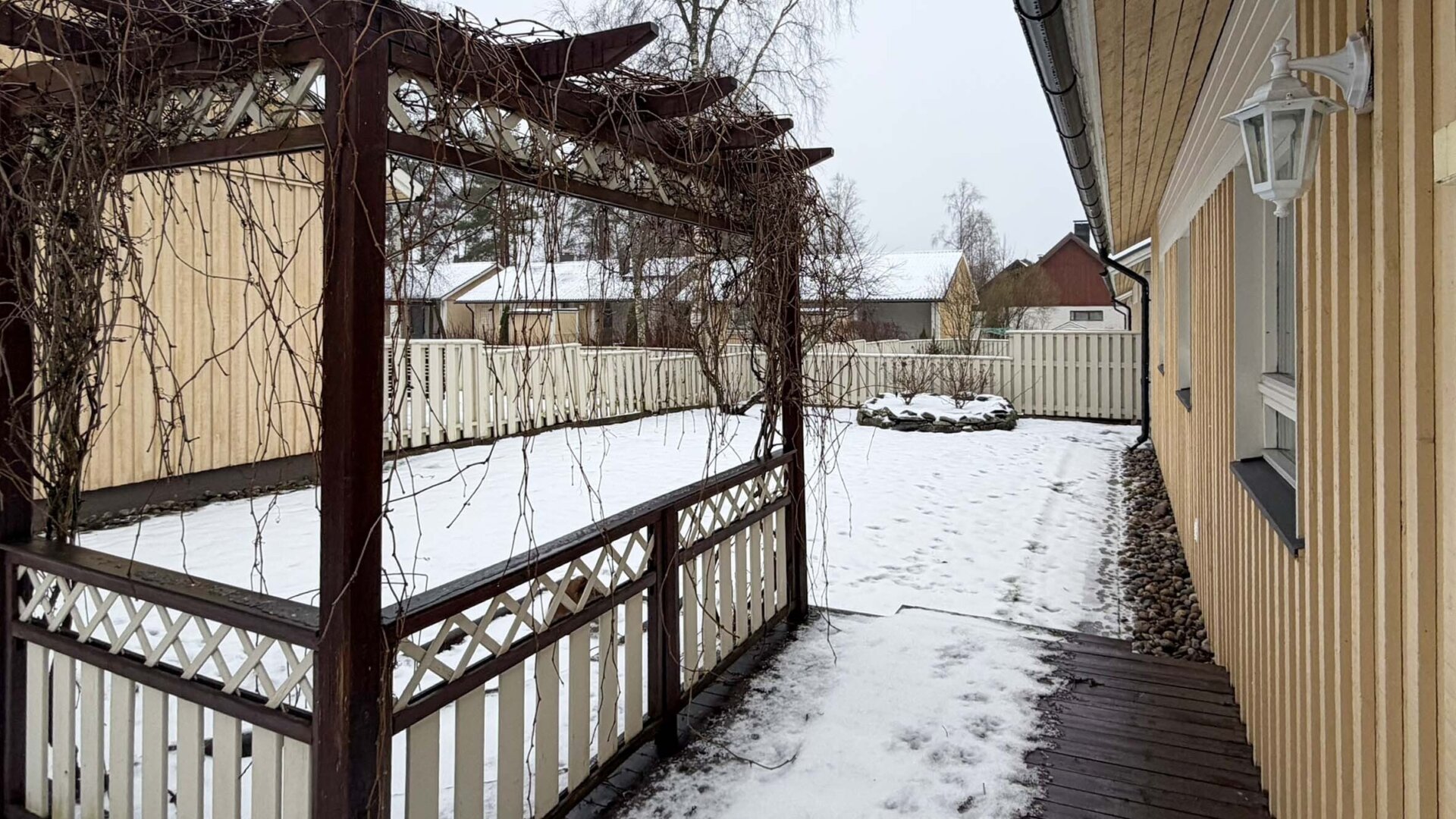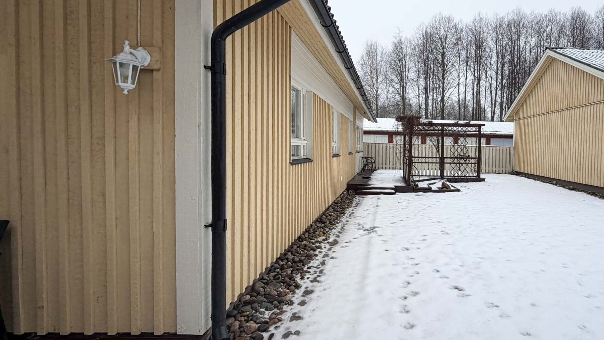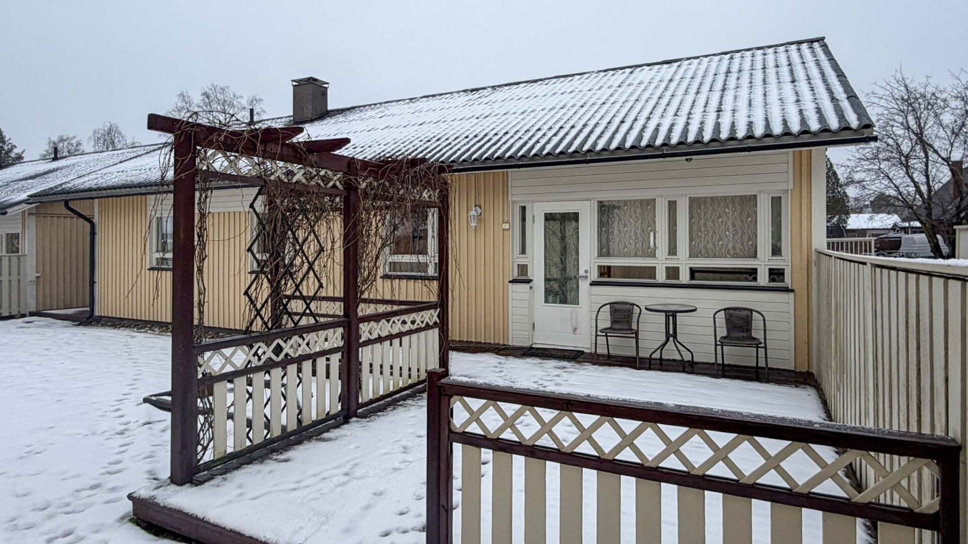 - Terrass, vardagsrum och sovrum mot söder. Kök mot norr.