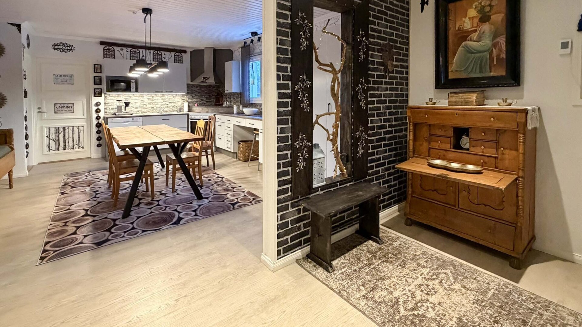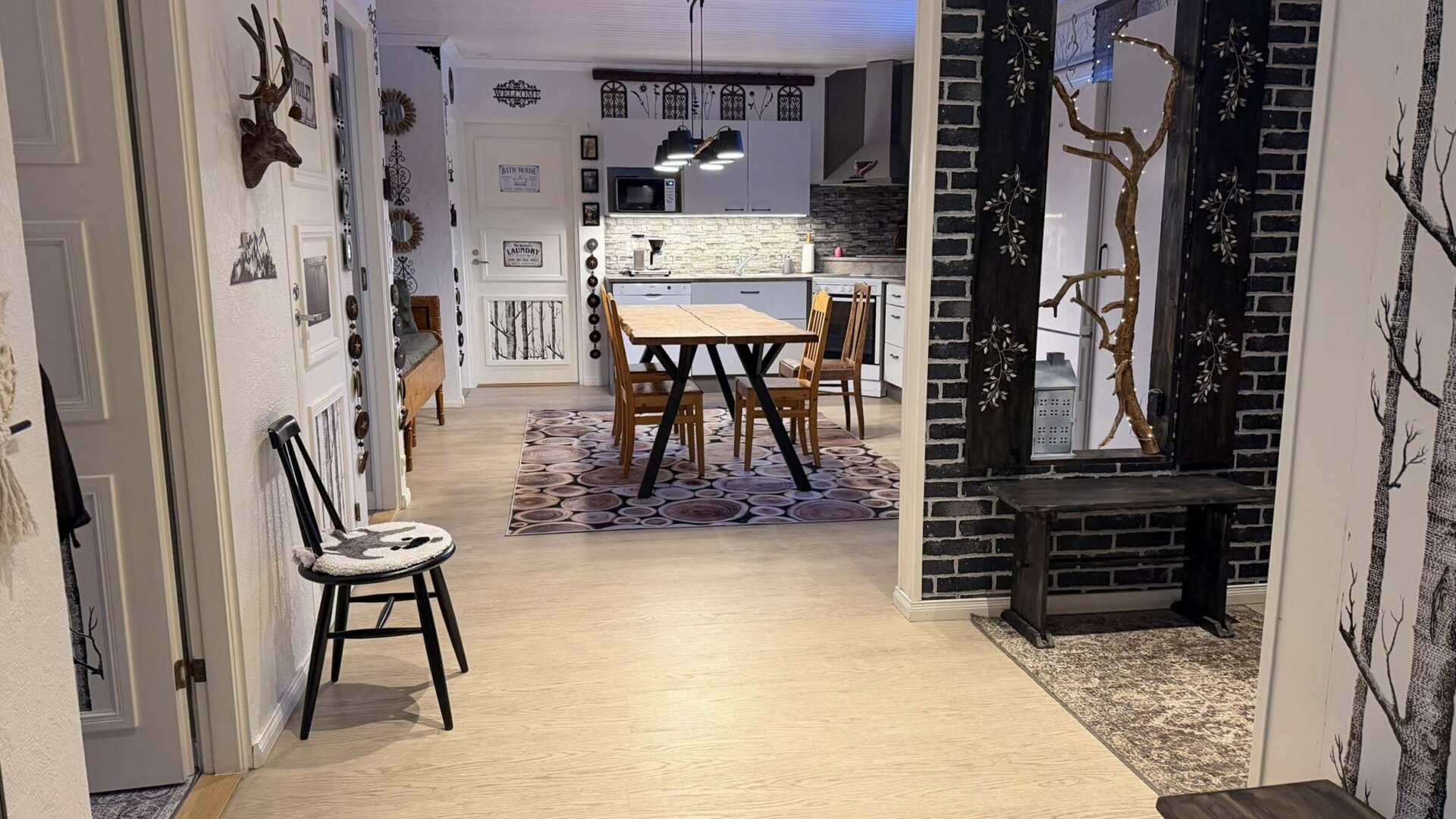 Planlösningen är väl genomtänkt och passar både små och större familjer. I vardagsrummet skapar en Contura spis extra trivsel och värme under årets kallare månader. Köket är funktionellt och modernt, och de renoverade våtutrymmena tillsammans med den egna bastun och extra wc ger en hög boendekomfort.