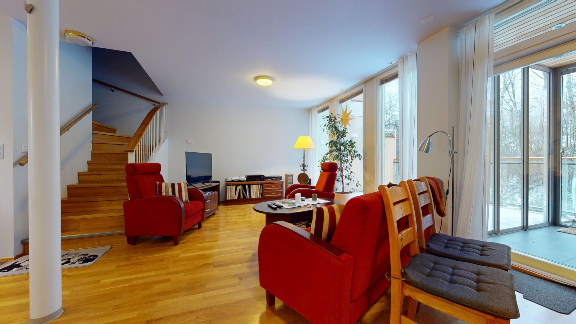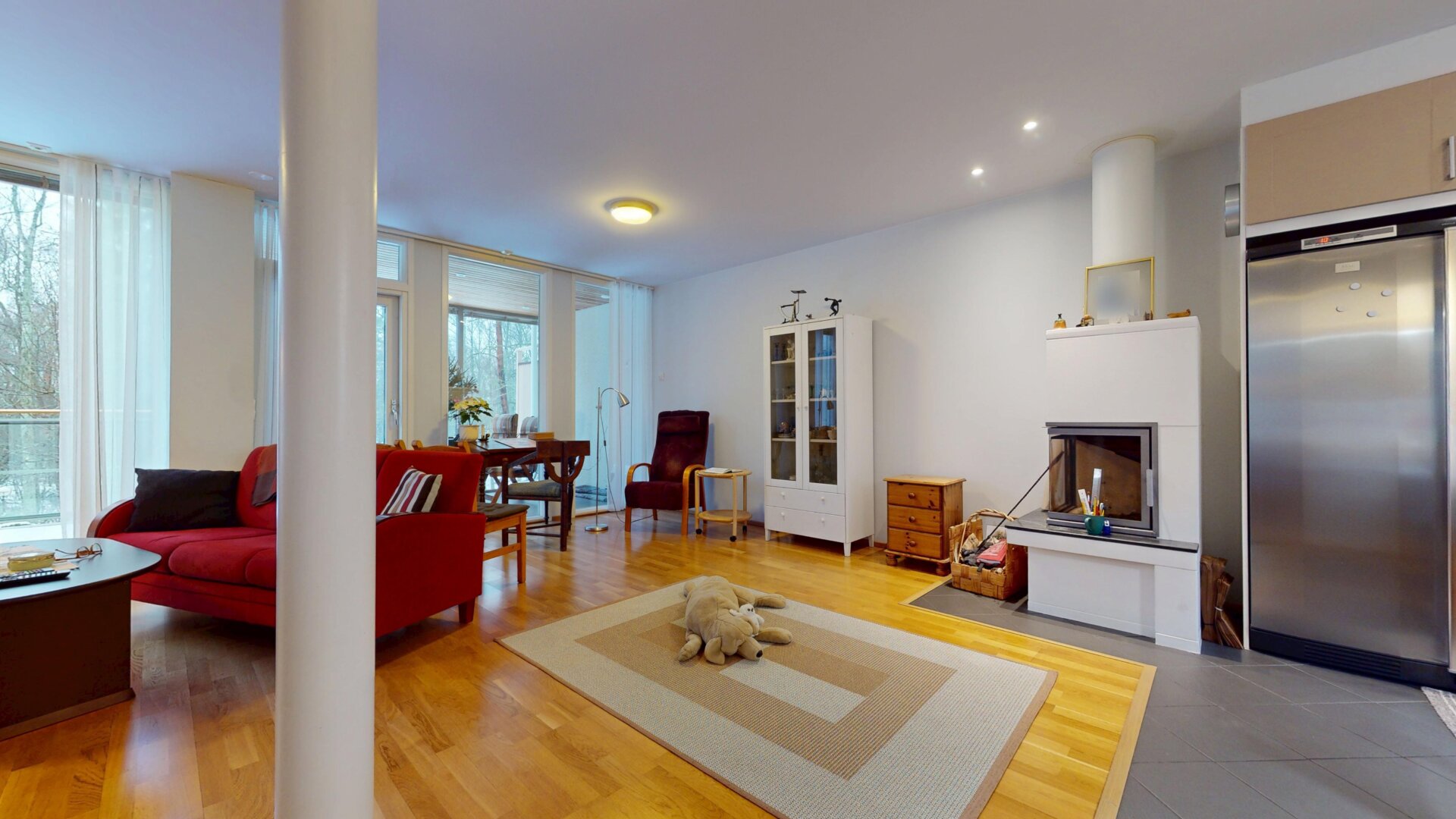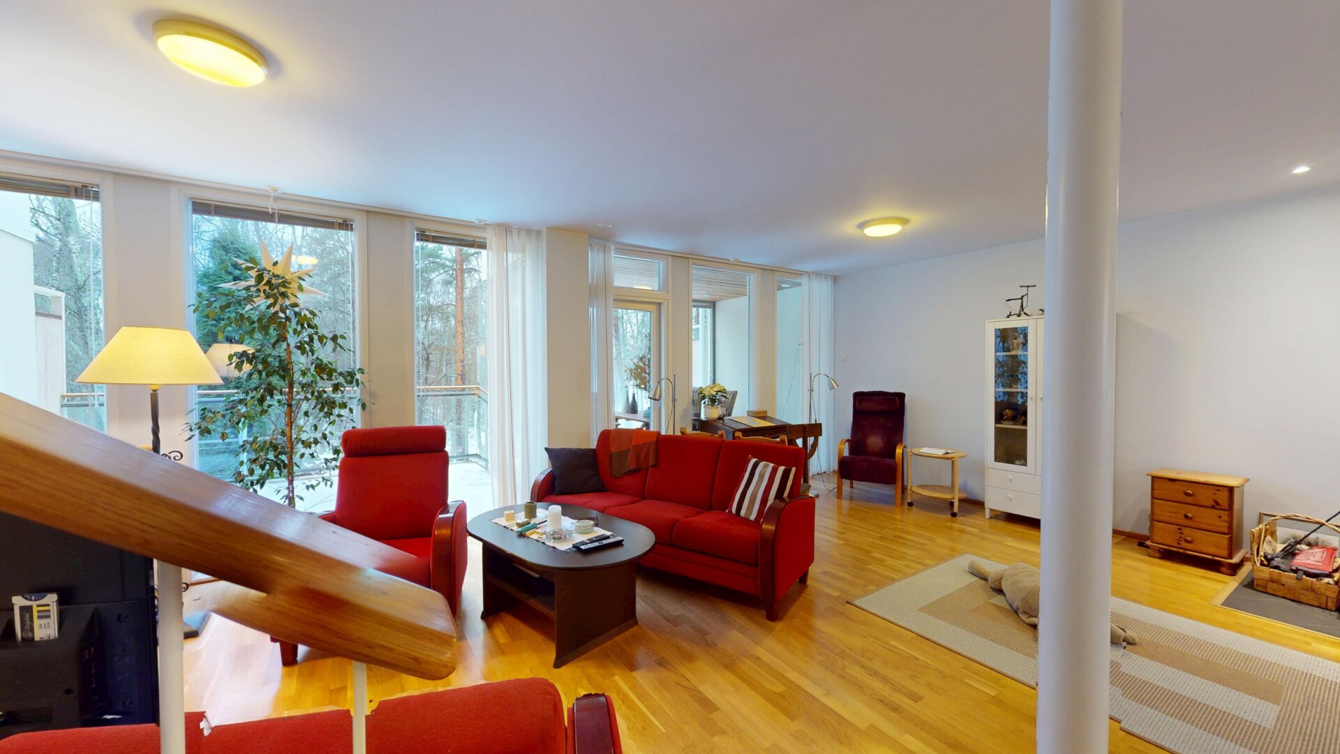 Bostaden erbjuder ljus och öppen planlösning fördelat på 135 m² med 4 rum och kök, badrum/wc/bastu, separat wc och hjälpkök med golvvärme i hela bostaden samt varmt garage om 19 m².