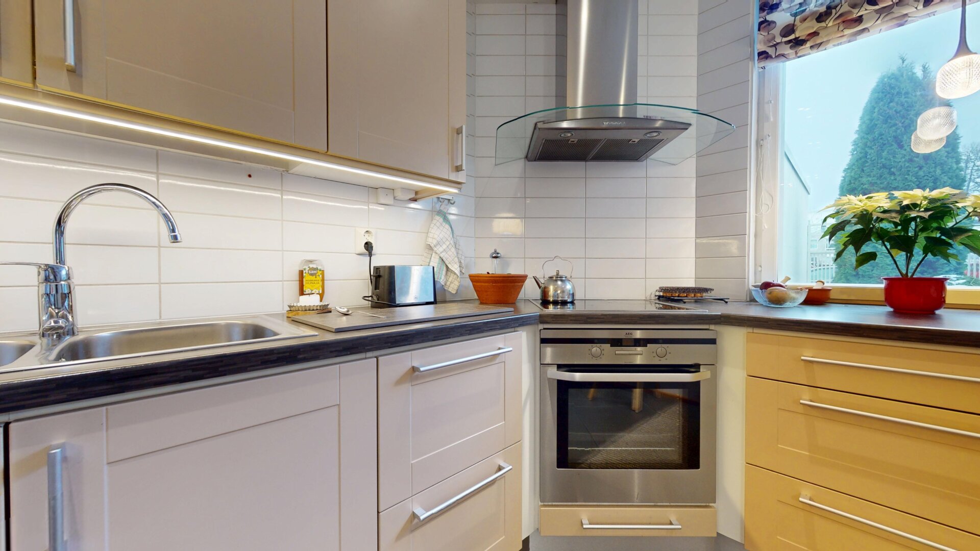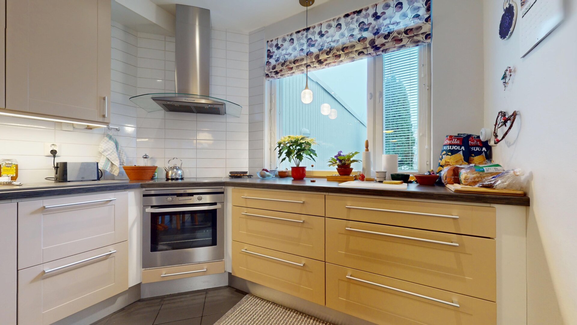 - Utrustning: Kylskåp, frys, Spiskupa, spisfläkt, diskmaskin