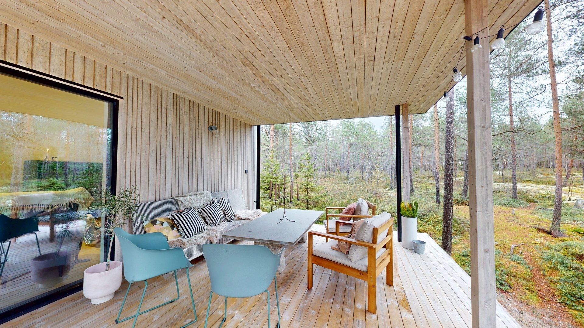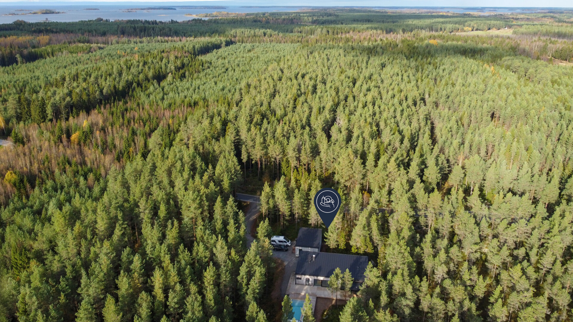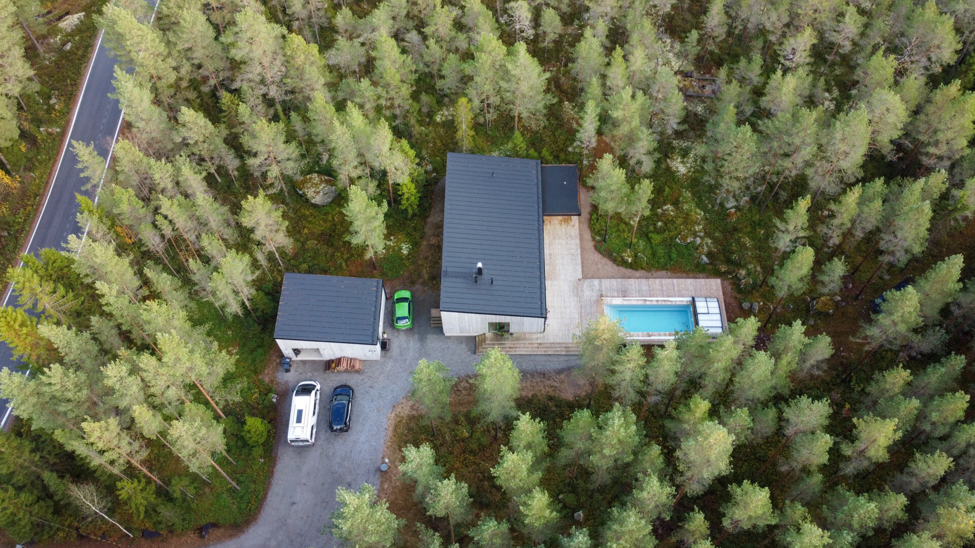 Tomten är en naturlig pärla på 5 600 m², med berg i dagen, tallar och blåbärs- och lingonris runt knuten. Här får man verkligen känslan av att bo i naturen utan att ge avkall på modern komfort.