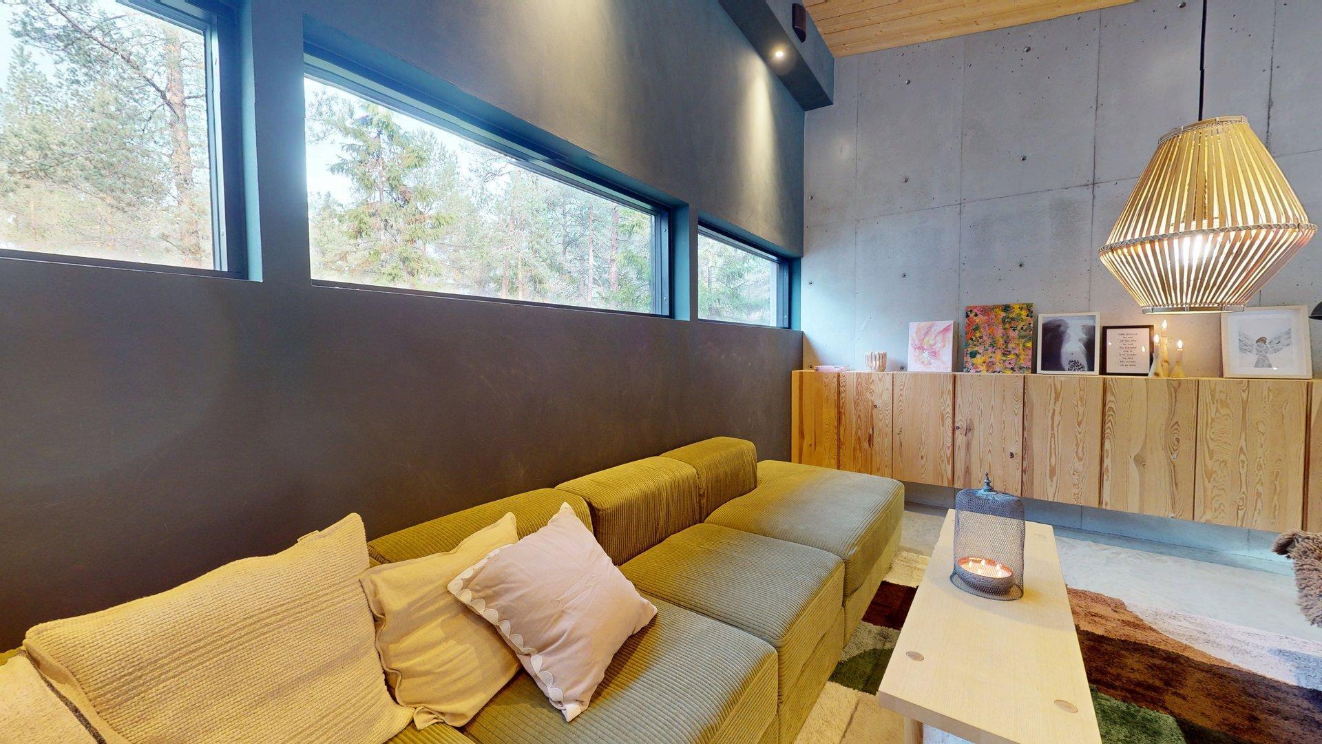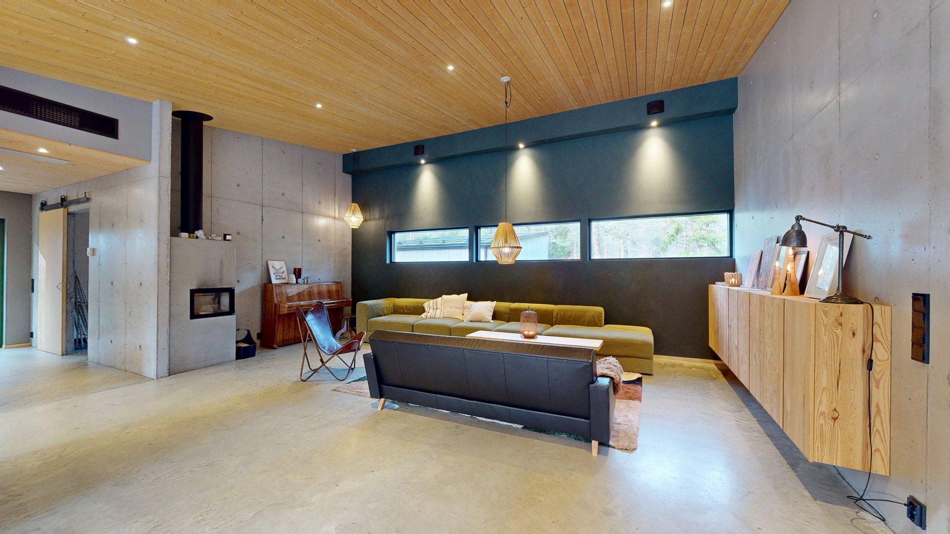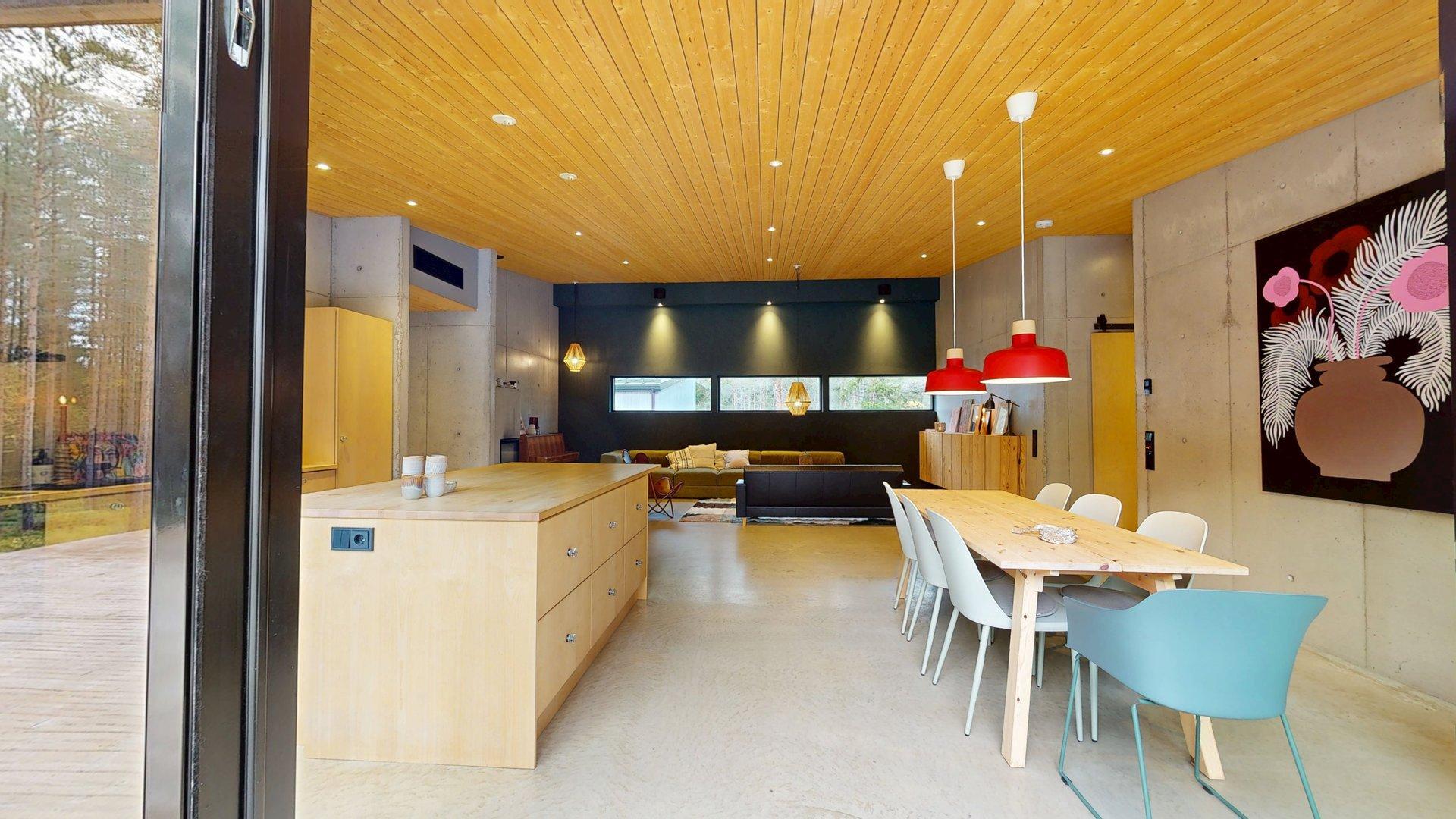 Nu finns chansen att köpa detta unika, gedigna och moderna egnahemshus byggt i kombination av trä och betong, mitt i naturen men ändå med alla bekvämligheter du kan önska sig.