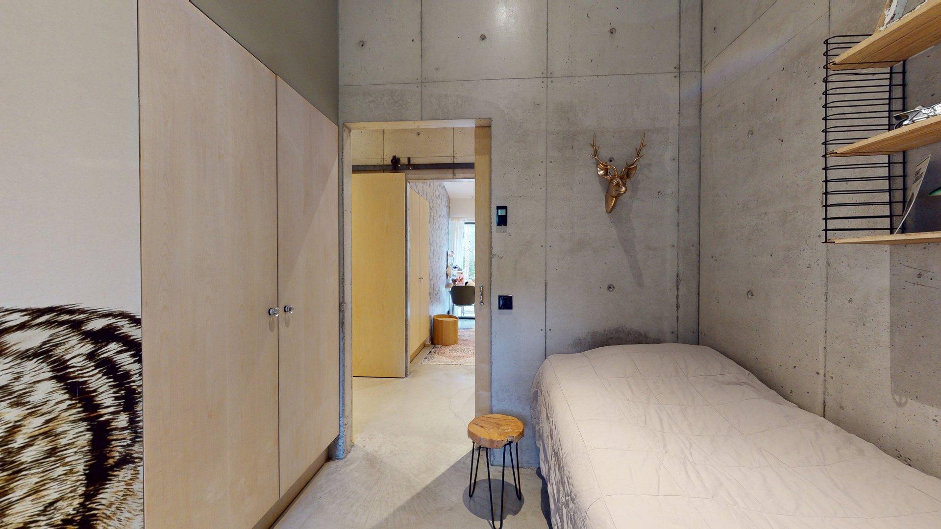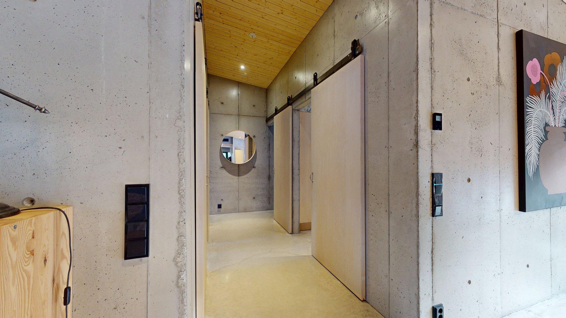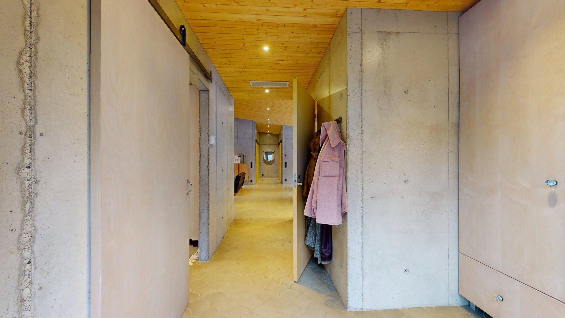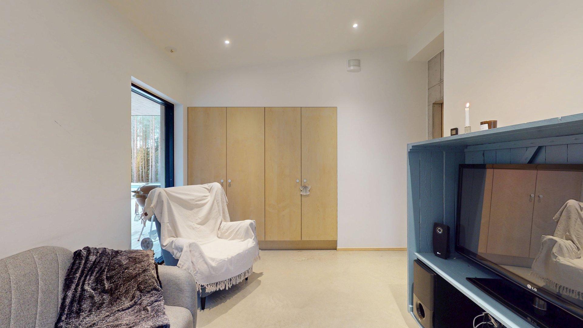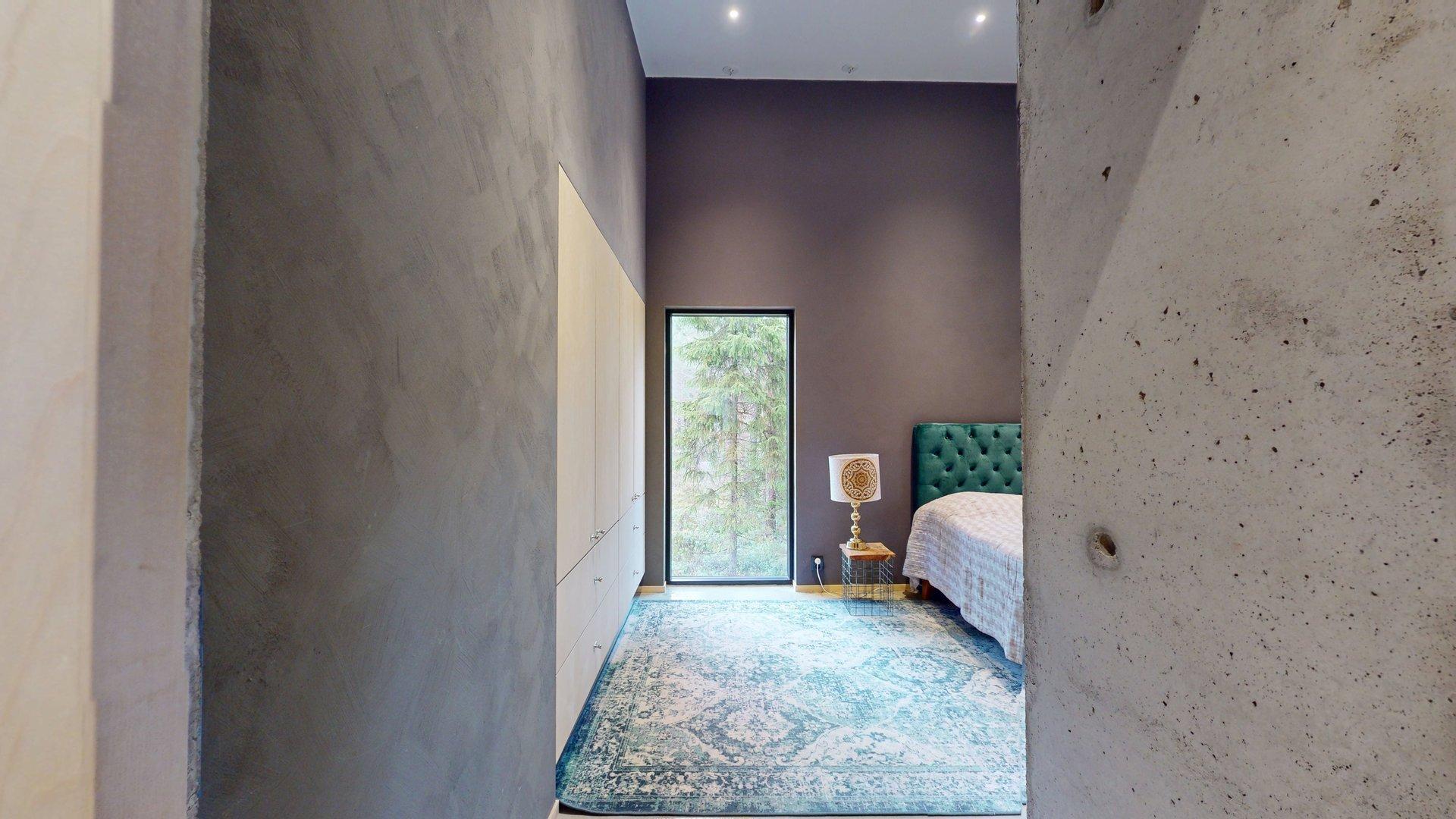 Huset är byggt i ett plan och rymmer fyra sovrum, ett luftigt stugkök med öppen planlösning, två badrum varav ett med bastu, samt ett praktiskt grovkök. Boytan är 139 m² (158 m² totalyta). Inomhus möts du av slipade betonggolv och väggar en stilren, hållbar och lugn känsla som håller över tid, stora fönster som mot söder och med utsikt som bjuder på naturens årstidsväxlingar.