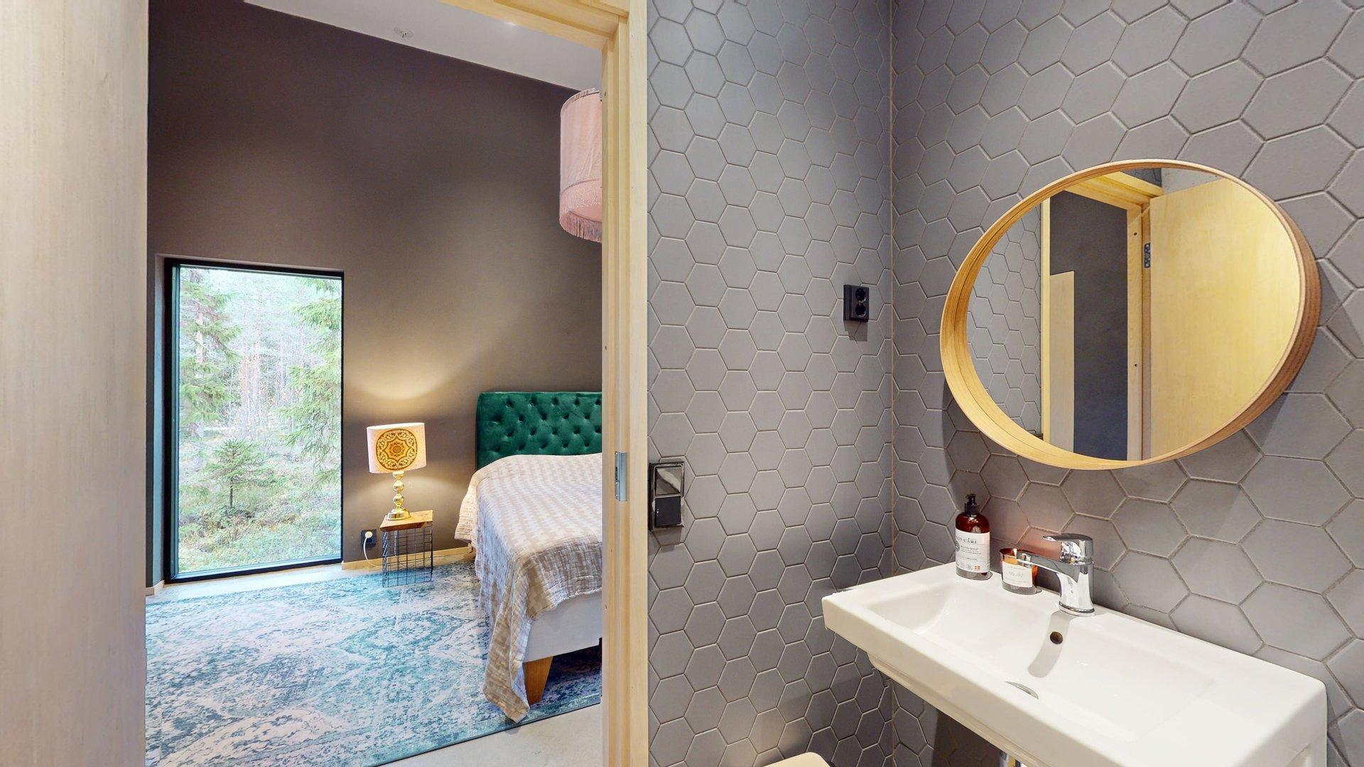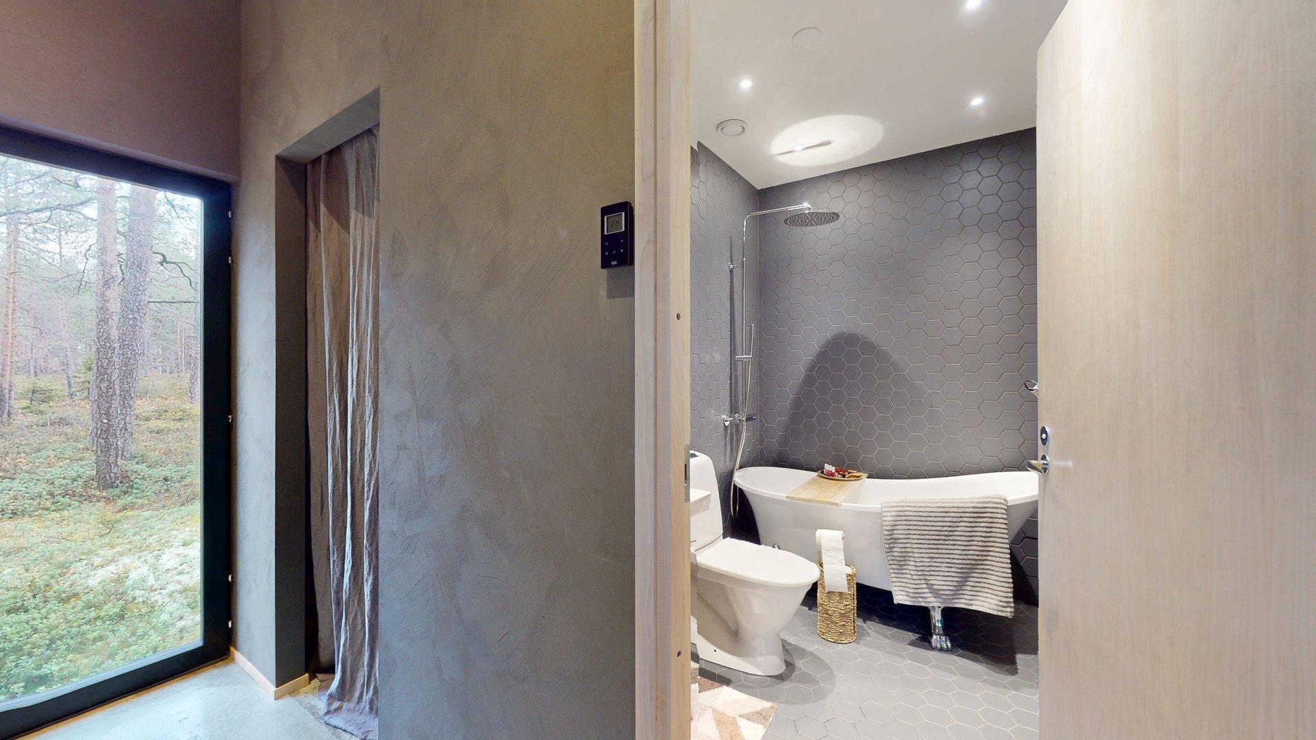 - Utrustning: Badkar, golvvärme, wc, dusch, spegelskåp, spegel, integrerad armatur