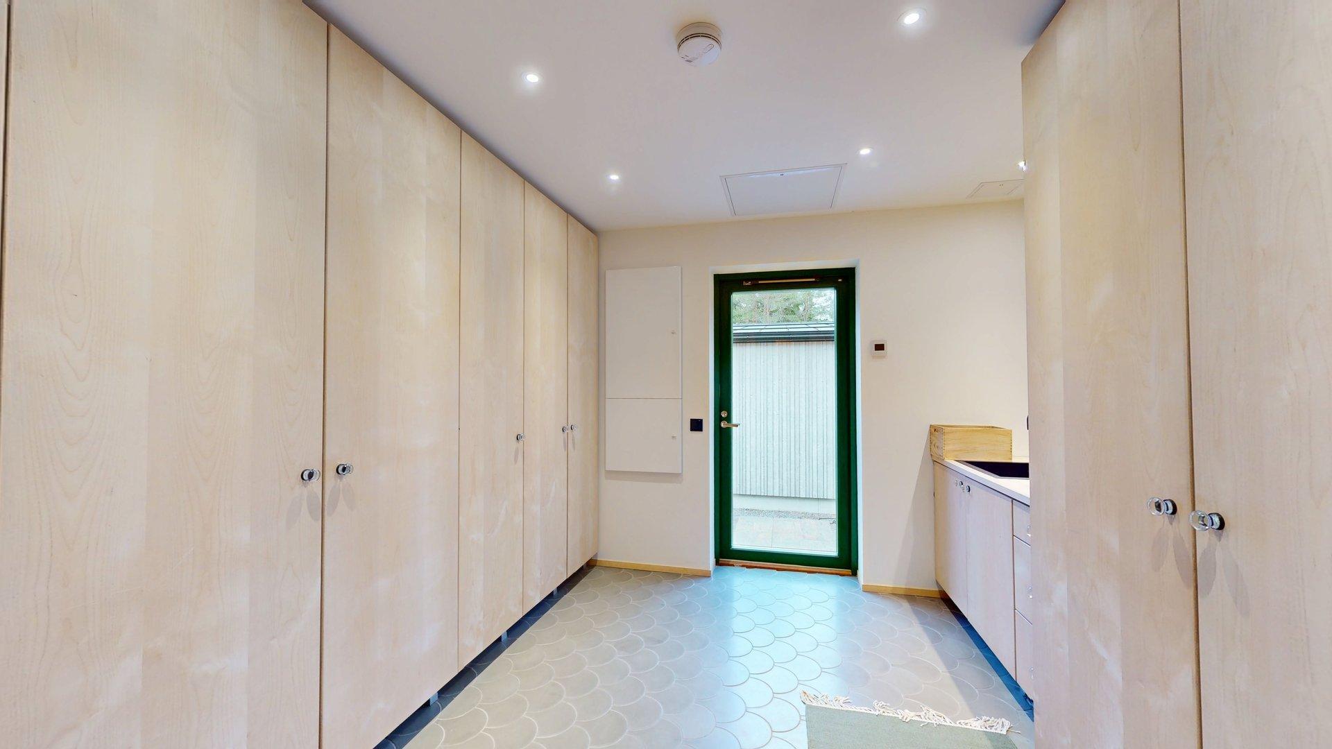 - Utrustning: Tvättmaskinsanslutning, tvättfat, golvvärme, bänk