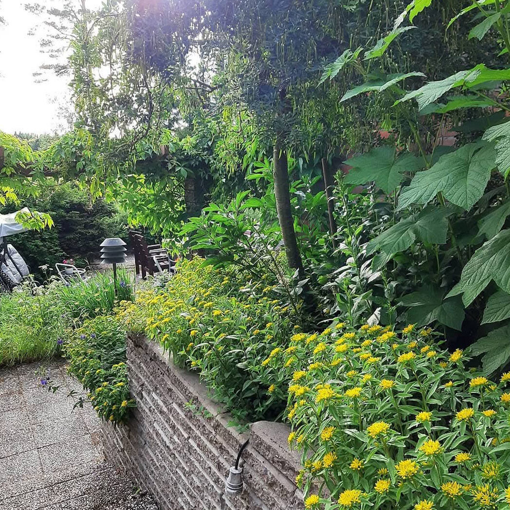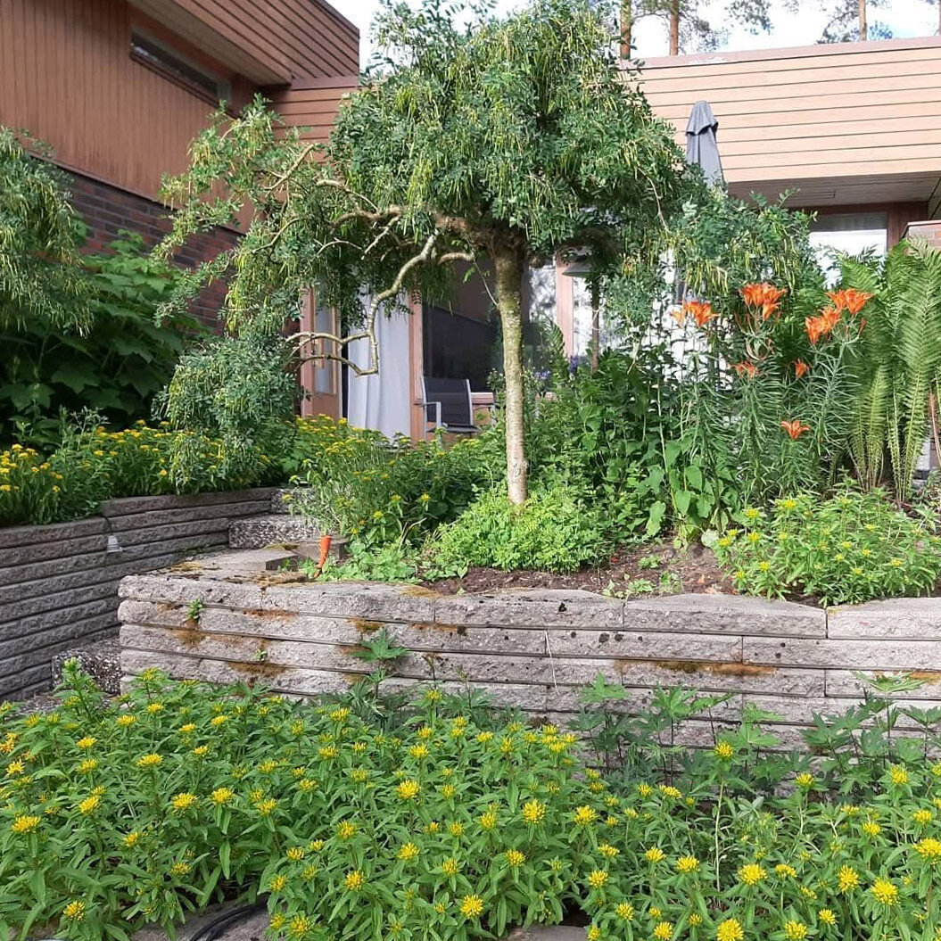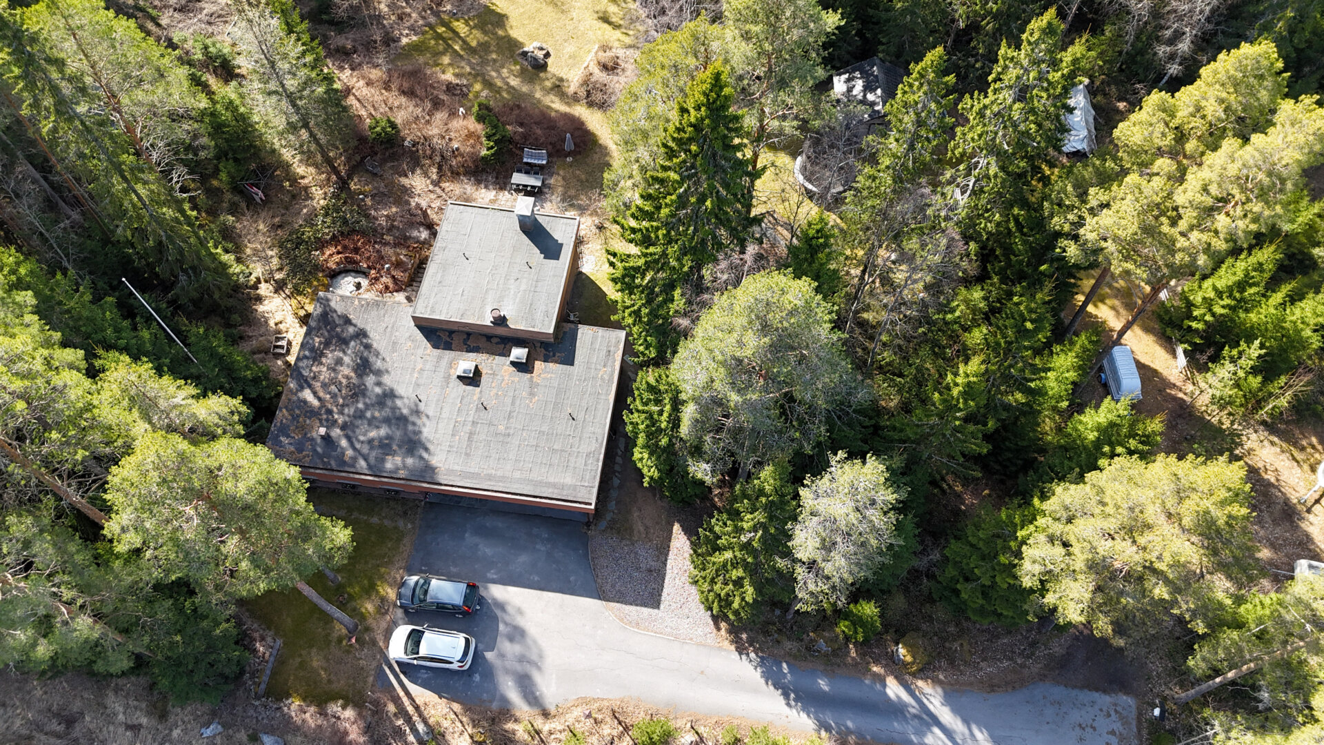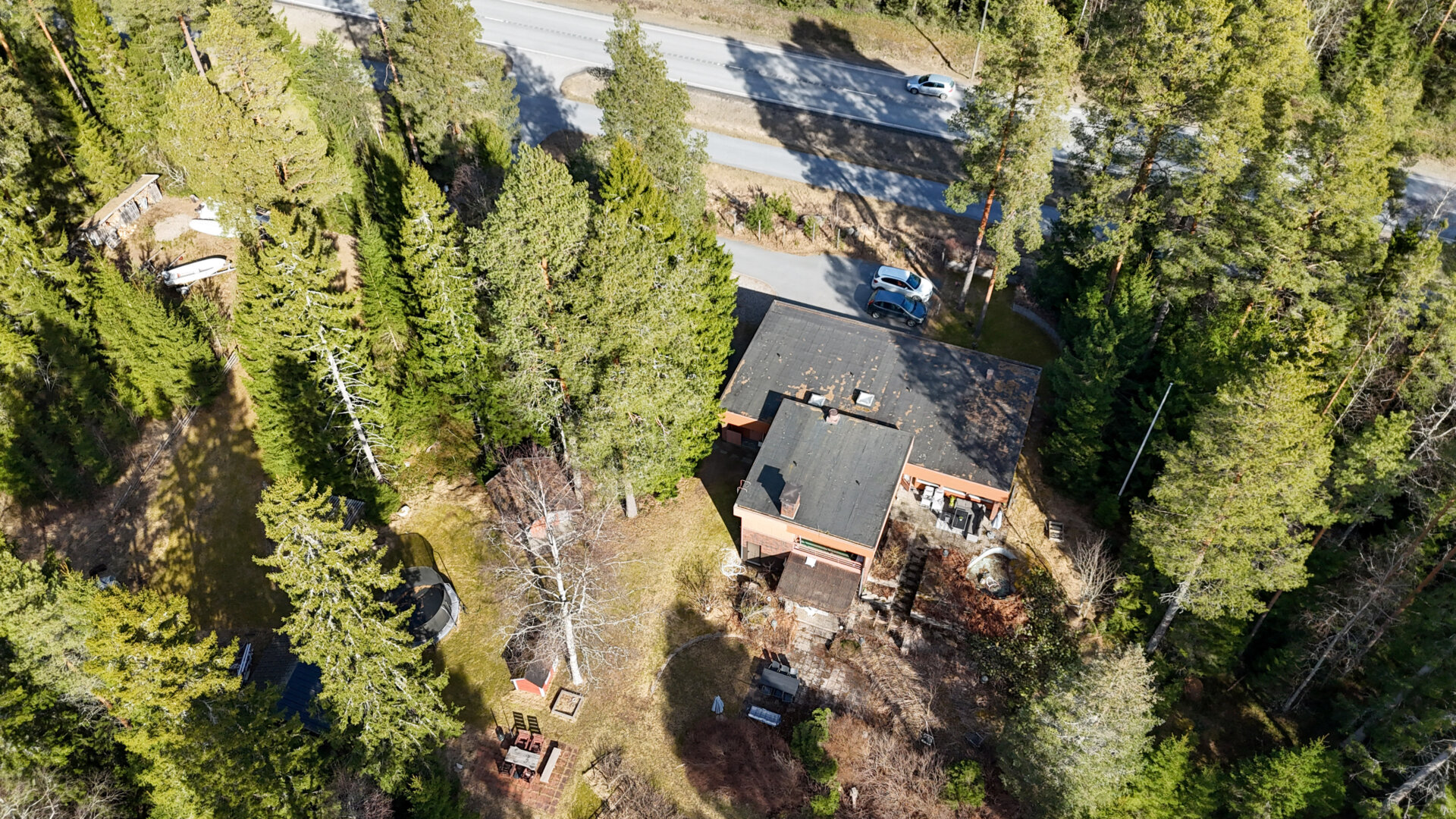 Fastigheten är belägen på en stor och mångsidig tomt om hela 1,4235 hektar med vackert anlagda avsatser, stensättningar och planteringar. På tomten finns dessutom tre förrådslador, gäststuga samt kallgarage.