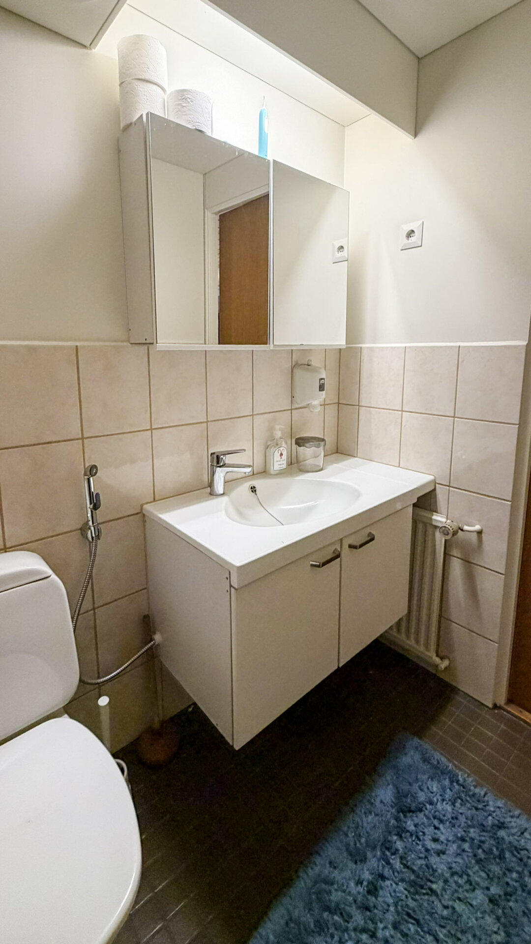 - Utrustning: Duschskåp, dusch, spegelskåp, spegel, badrumsskåp