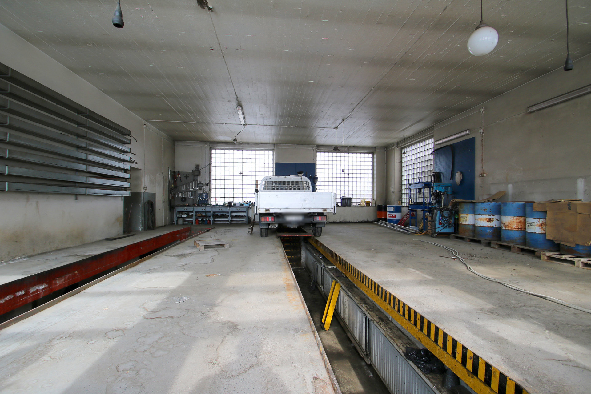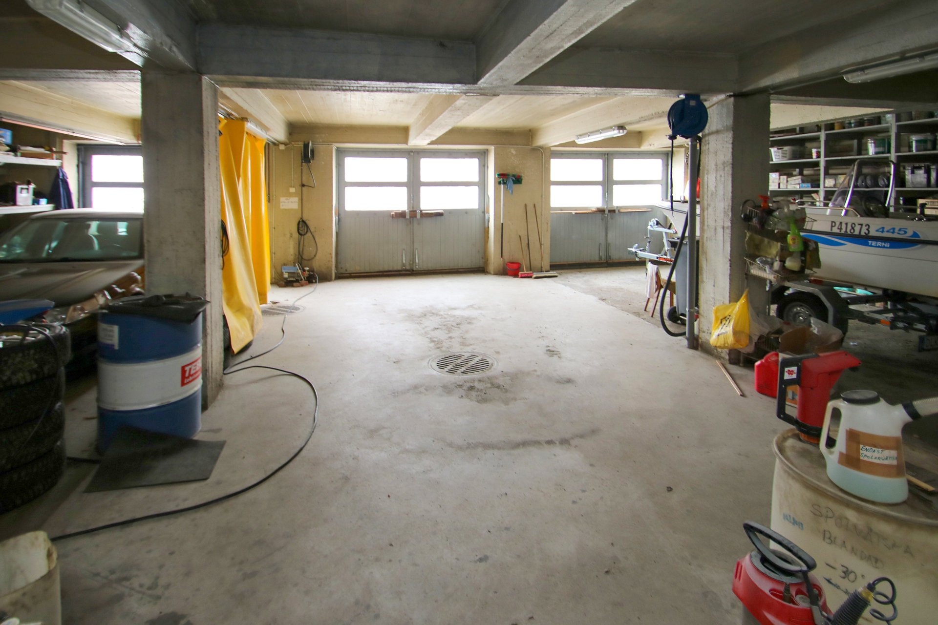 Källarvåning: hall/verkstad ca 107 m2 + tekn. utrymme ca 26 m2 + smörjgrop